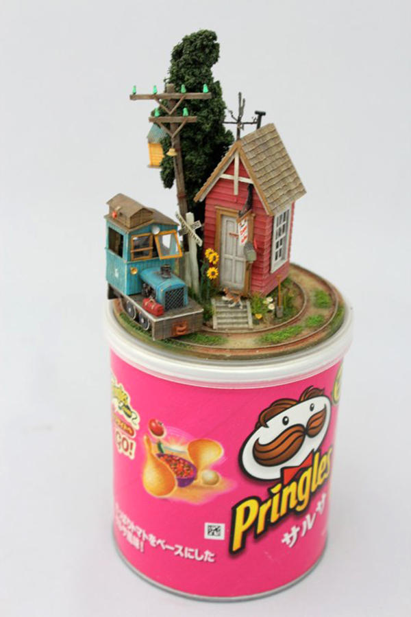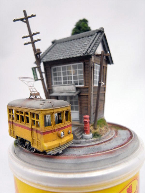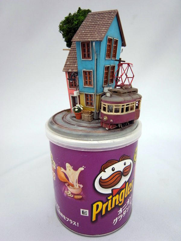 袖珍藝術的世界非常迷人,雖然有可能會因為手工限制的關係影響精緻度,但還是能夠藉著小小的房子、小小的桌子和上面的咖啡杯,讓人情緒能快速地投入袖珍藝術的世界裡,創造出自己夢想中的洋房,重現心靈深處記憶的那個所在,或是像藝術家 Akihiro Morohoshi 一樣,製作自己最喜歡的火車鐵路模型,憑藉著多年製作袖珍模型的技能,總覺得光是做做火車袖珍還不夠有意思,決定結合日常生活物件,讓袖珍世界有了新的舞台。