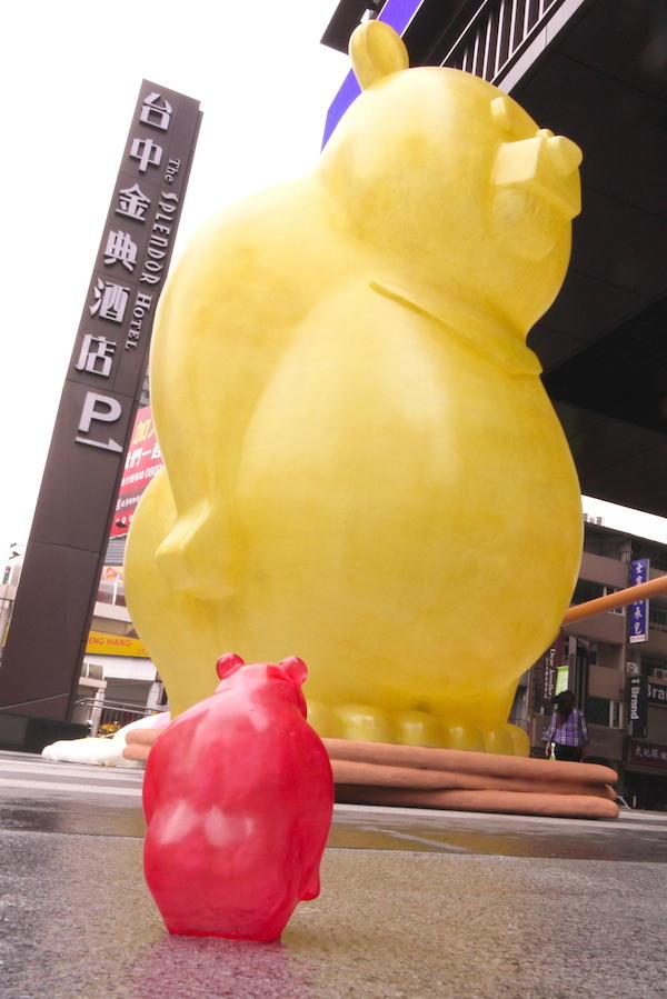 看來軟Q可口的軟糖熊是藝術家運用新的技法,以帶有透明質感的玻璃纖維製成,最後再染上各式繽紛的色彩,半透明的 Moon Bear 像極了真實的軟糖。而另外一個特色則是在夜晚才會顯現出來,透過燈光的照射,頂著圓肚子大屁屁的 Moon Bear 變得更加可愛迷人,晚上拍起照來又是另外一種風味!