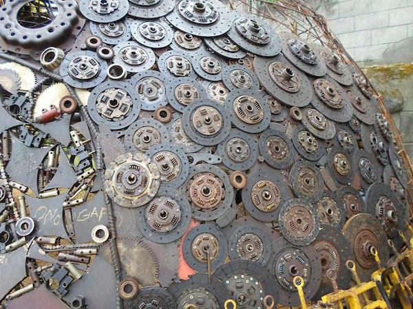 藝術家利用回收的汽機車零件、鏈條、螺絲、彈簧、老虎鉗等各式各樣的廢棄金屬來打造這隻巨大烏龜,雖然算不上環保,但也相當具有廢物利用的精神。全金屬打造的質感完全像是從科幻電影裡走出來的角色一樣,如果再設計個駕駛座那就更有感覺了。