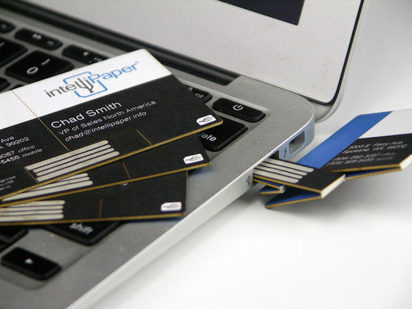 友站癮科技過去也曾介紹紙製隨身碟問世的消息,但當時這個技術尚未普及,也還沒有大量生產,如今現在終於有團隊開始讓這個新奇的發明進入人們的生活中,而且就從資訊需求量大的商業活動開始。swivelCard正面是紙,反面也是紙,可以編排任何你想印製的內容,而上面的金屬細線則是儲存檔案用的電子接點,可供使用者重複讀取與寫入,跟大家常用的隨身碟沒有兩樣。