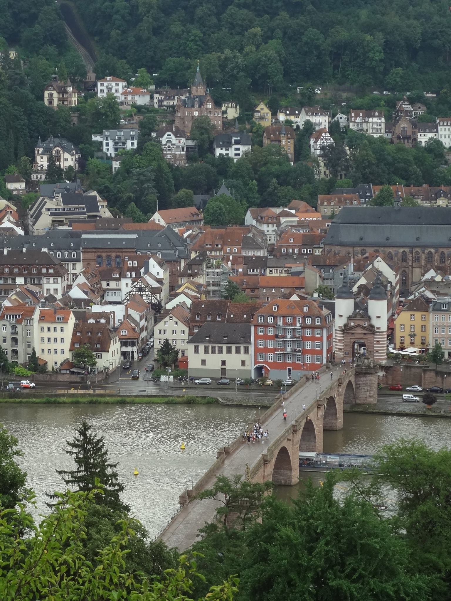 這老城真是個古典美人,學生佔1/3 人口的大學城,沿著河岸邊散步,或是爬上哲學家小徑漫行,躺臥在14世紀古堡前的綠草地上,都是一種放鬆的享受。old town中的主街道事歐洲最常的老街,觀光人口絡繹不絕,融入歷史建物中的店家,生意真好。