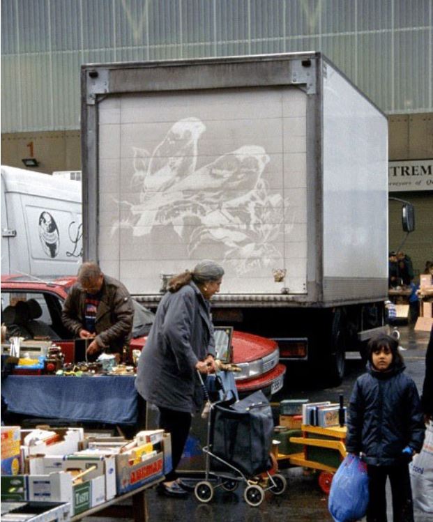 Long以貨車後門作為畫布,門框充當畫框,畫下某些藝術歷史主題或是英國家庭常見的複製品,完成後不忘在角落留下簽名,看起來與一般平面畫作沒太大差別。然而由於貨車本身的特殊性質,使得The Great Travelling Art Exhibition系列作品跨越了2D和3D創作的界線,貨車也搖身一變成為藝術品。