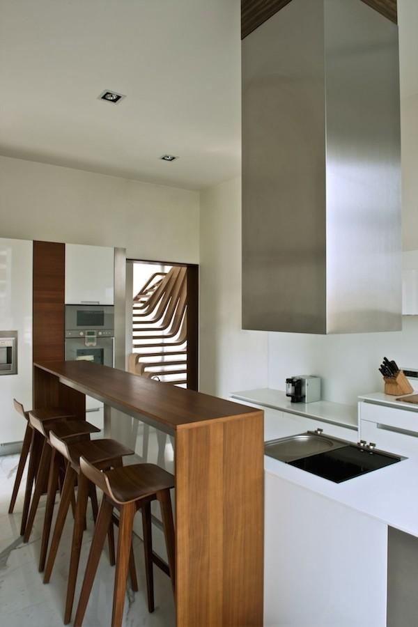 在樓中樓格局裡,樓梯除了影響動線,也是決定室內空間是否有壓迫感的一大重點,如果沒辦法把樓梯從視線中移開,或許想辦法把它設計的輕盈一點,藝術一點,也是個不錯的選擇。喜歡運用線條,並且以木頭為材料的設計團隊,還有許多特別案例可以在Arquitectura en Movimento Workshop的網站裡找到。