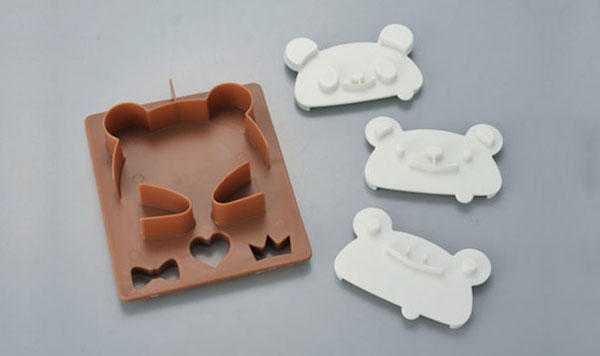 咖啡色的模具是依照一般吐司的大小來製作,突出的部份可以在吐司上切割成動物的輪廓,以及可愛的小短手。接著再用白色模具將臉型壓出來,不管你喜歡的是熊、熊貓,還是青蛙,只要輕輕一壓,就能看到動物表情留在吐司上頭,最後把多餘的吐司塞到主角背後,就可以創造立體吐司的感覺,實在有夠可愛的~