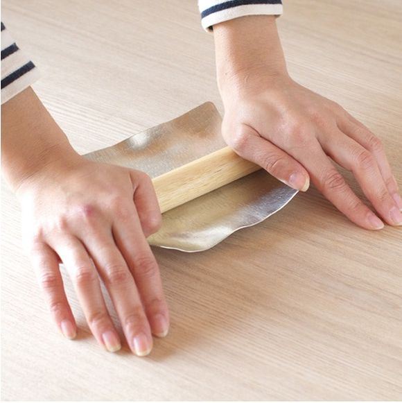 來自日本的 Suzugami 是由鐵槌敲打成形,將薄度控制在柔韌到能徒手彎折,又有足夠的硬度來維持形狀,可以當成置物碟或者點心盤使用。
