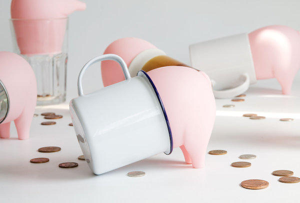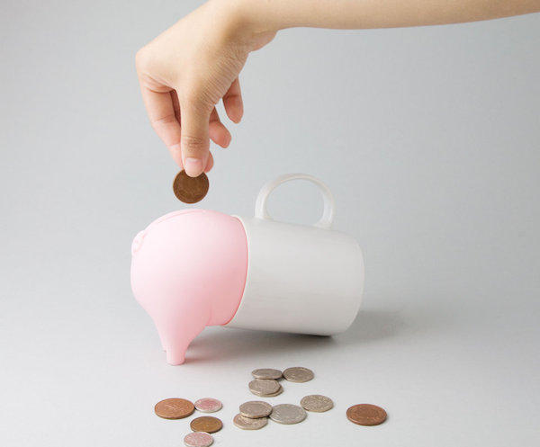愛吃零錢的小豬不斷的在裡頭找硬幣,結果不小心吃太多卡住了,如果想拯救他的話,看來只好把裡頭的錢都拿出來了~只做一半的身體,留給大家無限的想像空間,而且還可以讓使用者自由選擇杯子的造型與花樣。設計師節省了設計的時間(玩笑話),對使用者來說,又可以發揮自己的創意,算是個相當成功的好設計~
