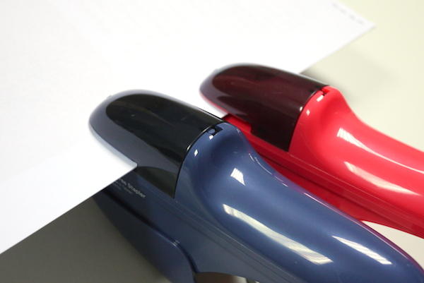 釘書機固然好用,但在某些情境裡,金屬的釘書針可是一個讓人又愛又恨的小東西,例如需要碎紙的時候。這時得請出今天的第二位主角『PIN 無針釘書機』,它和大家印象中的釘書機模樣差異甚大,若針要說親戚的話,應該打洞機的血緣還要稍微近一點。
