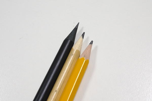 Cubee適用7~8公釐粗細的鉛筆,無論是圓形、三角形、六角形都可順利使用,而大編特地找來三種不同類型的筆,削成三種不同程度的筆芯粗細,提供給大家參考。
