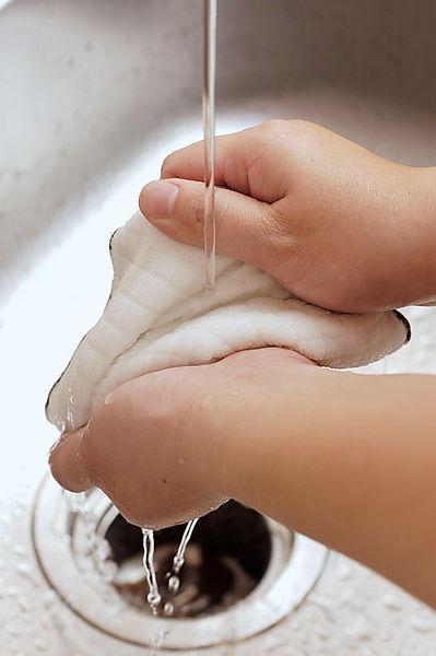 當抹布產生異味時,可以在水中加入漂白水做清洗,或是加入約1/20的白醋,浸泡20分鐘後再加以清洗。為達到抹布的最佳乾淨度,清洗時一定要有沖水搓洗的程序,才能將抹布上的污垢洗掉。