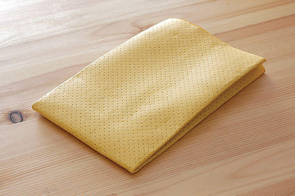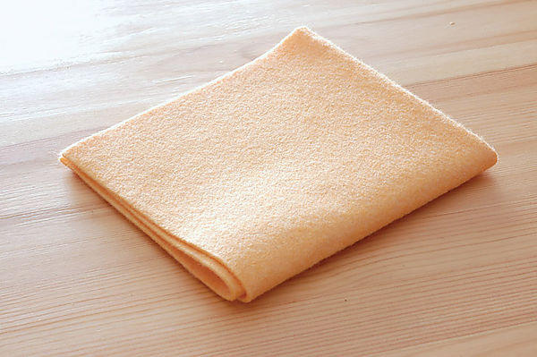 一般用來汽車擦拭的鹿皮巾,最大的優點就是吸水力佳又不易掉屑及留下水漬,因此可用來擦拭打掃浴廁後的水漬。而鹿皮巾又有分會硬化及不硬化兩種,會硬化的鹿皮巾就必須在清洗乾淨後擰乾,保持濕潤時放入專用的保存盒中;而不硬化的鹿皮巾清洗後,放在通風處即可,如果曝曬到日光則容易造成脆裂,另外要特別注意的是,鹿皮巾清洗時不能搓洗亦不需任何清潔劑,才不會造成表面塗層的損壞。