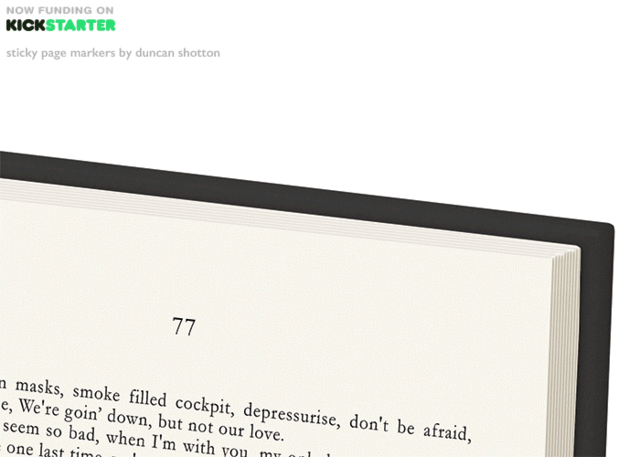 從第一張動態圖檔中應該不難看出來今天的主角是方便實用的便利貼,小巧造型通常被用來當成書本上的索引標籤,讓大家不用一頁翻過一頁,只要輕鬆一瞄就能立刻找到想要的頁面。Duncan Shotton所設計的「Sticky Page Markers」大改標籤便利貼鮮豔卻無趣的外觀,多了可愛的圖案,成為書本上的一大亮點。