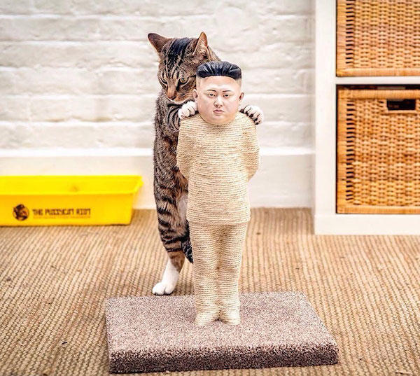 於是HIdeMyAss網站請來設計師打造兩尊高約45公分高的公仔,利用3D列印技術做出維妙維肖的樣貌,並且親手將麻繩纏繞而上,做出超受貓咪歡迎的人形貓抓板。藉由貓咪與金正恩、普丁的對決,象徵著人們應該也要想辦法對這些獨裁政府做出一些反制。但面對巨大的國家組織,他們所推行的方法是相對迂迴的,利用特殊的軟體來為使用者的網路數據加密,以便躲開審查,可以自由尋找國外被封鎖的內容,其概念就像大家常聽到的「翻牆」。