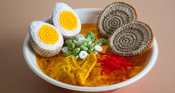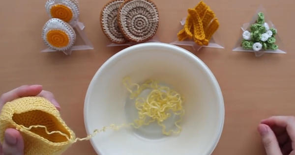 天啊!這是傳說中萬惡的宵夜文嗎?香醇濃郁的金黃湯頭,配上對半剖開的滑嫩溫泉蛋,兩片油脂豐富又軟爛的叉燒肉,最後再加點筍乾、紅薑絲、青蔥,這拉麵看得讓人直流口水,即使…它是毛線做成的也一樣!擅長毛線編織的日本部落客betibettin在Twitter與YouTube分享自己的作品,同時也利用影片做簡單的教學,但原本應該像手工藝教學的影片,當主角變成拉麵的時候,看起來實在很像料理節目啊!