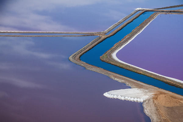 美國攝影師Julieanne Kost在南舊金山拍下了一系列名為「San Francisco Bay – Purple」的攝影集,這些深淺不一的紫色湖水並不是遭受污染,也不是經過後製調色,而是大自然的天然色彩。人造的鹽湖將舊金山灣的水引入,經過了至少五年的時光,數以億計的微生物開始在湖水裡頭生活,呈現出千變萬化顏色,而且不只是紫色,只要有計劃的控制,想要湊齊彩虹的七彩顏色應該都不成問題。