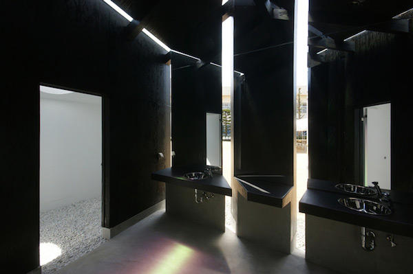 若不是看到洗手臺與馬桶,還真難相信這是一間公共廁所!建築師石井將當地的歷史與人文融入設計中,讓廁所不只是解決生理需求的地方,更成為當地的另類景點。只不過從時尚的外表有點難以聯想與猜測其設計概念,或許設計師該在室內放塊立牌來介紹整體建築,讓人們在解放的同時還可以順便學習知識~(笑)。如果想要了解更詳細的資訊與公廁故事,可以到Daigo Ishii + Future-Scape Architects的網站來瞧瞧。