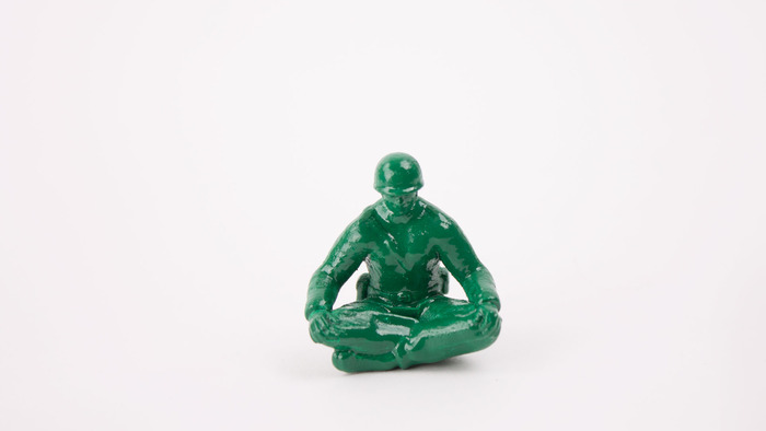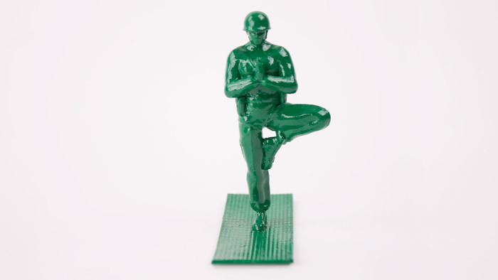 選擇綠色小兵並不完全是為了好玩,Dan Abramson 認為,瑜珈所帶來的平靜身心效果,可以撫平因戰爭而受創的心靈。
