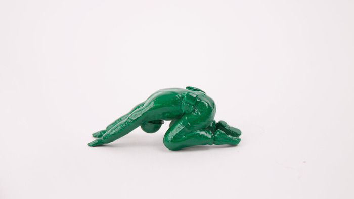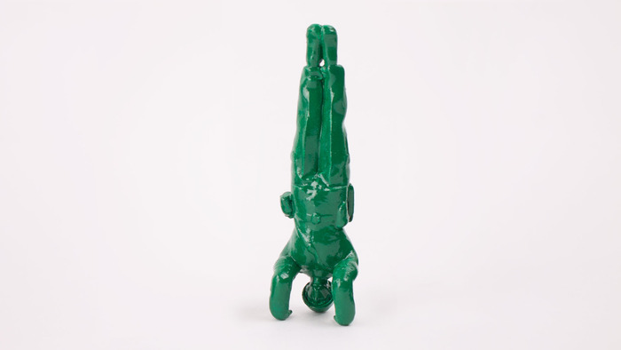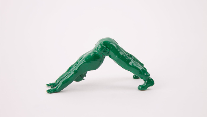 他原本打算用土法煉鋼方式,直接將模型的手腳切除後再黏上特定的姿勢,後來發覺這樣的做法不夠自然,跟瑜珈講求的自然平衡有所違背 其實是看起來是太醜,所以後來用了 3D 列印才完成。