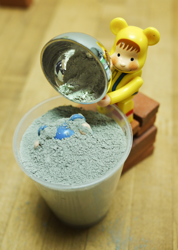 雖然玩得滿手水泥粉,但還是沒有靈感,不過倒是已經想到可以把誰放在牆頭上了,之前收藏的方吉再度派上用場啦!