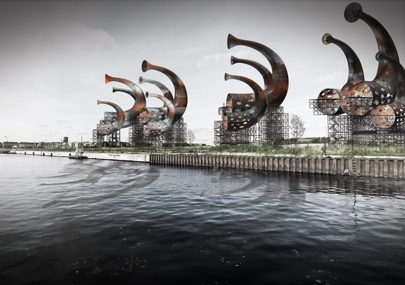 號角裝置一共分為四組,每組共有大、中、小三種號角,沿著海邊放置、架高離地,只能透過樓梯和平台靠近。每個號角都是利用從廢棄船隻拆解下來的木頭和金屬材料組成,環保、降低成本的同時,又能記念當地的海洋歷史和工業遺產。設計師透過Sound of Denmark,見證了風對丹麥的歷史意義和未來發展。過去維京人在海上航行,就是透過風力吹動風帆,如今吹過丹麥的風依舊,卻吹出了新天地,成為源源不絕的再生能源。