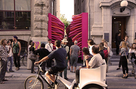 加拿大魁北克區的某條小巷出現了個有趣的裝置藝術,大量游泳用的浮力棒沿著兩側牆面包覆整條巷子,遠看很像從牆壁長出無數根觸手,像極了海洋中的海葵,走在裡頭的感覺一定相當微妙吧!