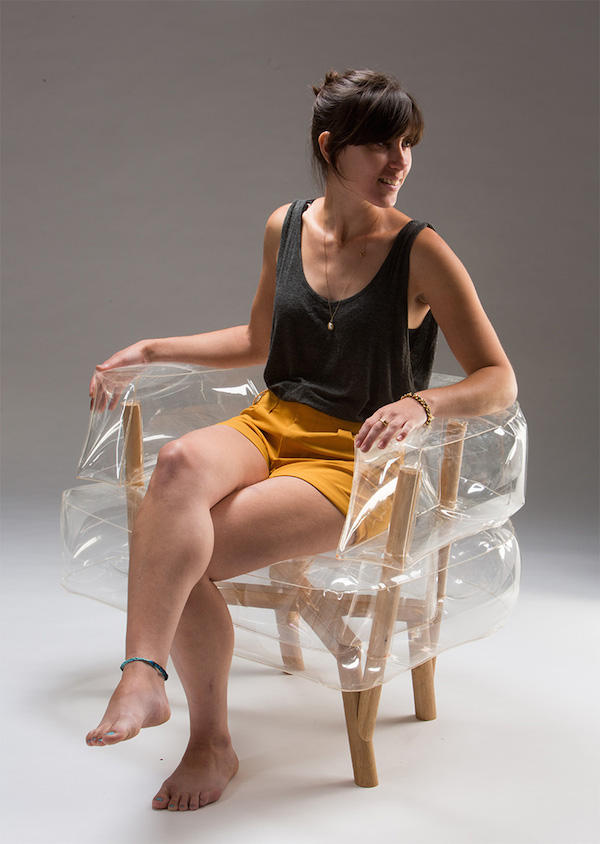想設計出一張好沙發,設計師們或許會從美觀、舒適、實用這些重要因素去考量,不過對以色列設計師 Tehila Guy 來說,體積可能才是創新的關鍵。人們印象中的傳統沙發裡頭都有著厚實的泡綿,提供足夠的支撐力與舒適,再加上笨重龐大的金屬與木頭椅架,讓重量與體積都相當可觀。而這兩個問題造成了沙發在運輸上的困難,於是她(雖然她的姓Guy,但卻是個不折不扣的女孩兒~)決定要讓空氣來取代傳統的填充物,椅架也要變得輕盈才行。