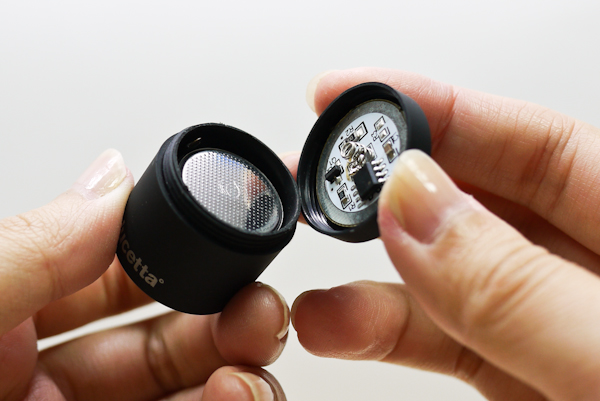 內附的鋰電池可使用 40 個小時,如果快沒電的時候,Lucetta 的光照模式就會只剩下長亮,無法切換到其他兩個,所以這可以當成檢查電量的方式。更換電池的方式很簡單,將頂端蓋子旋開即可,說明書就有寫。