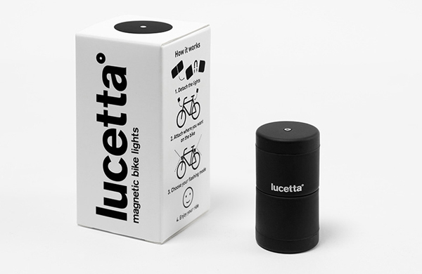 從中間"啵"開就能往腳踏車上丟,看是要一前一後或者一左一右做搭配,唯一要注意的是,因為 Lucetta 是靠磁鐵吸附,所以購買前要先確認你的腳踏車能不能和磁鐵作用,或者作用力夠不夠,如果不能,原廠也有推出專屬支架固定。