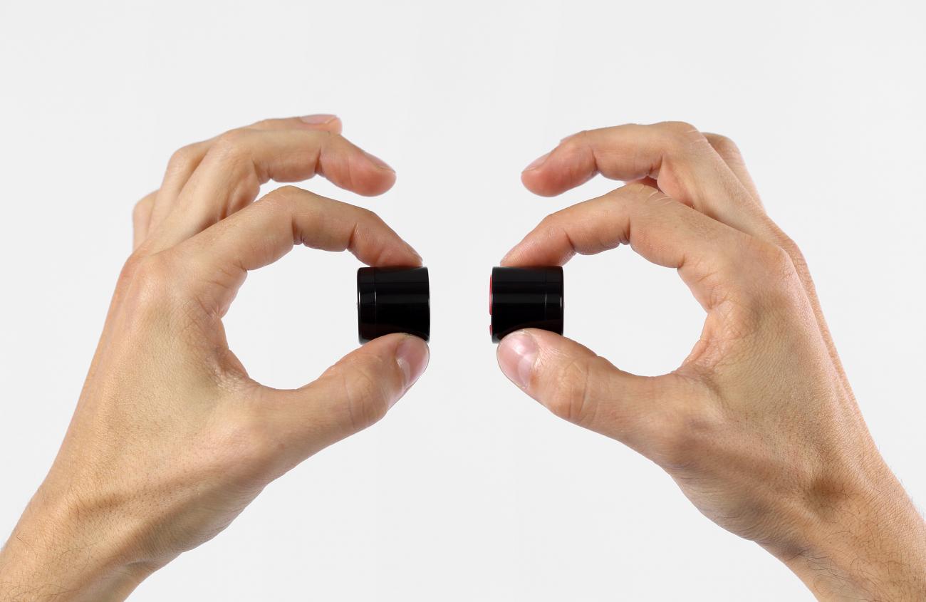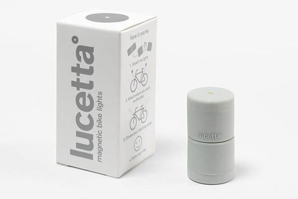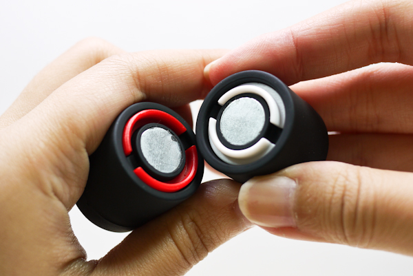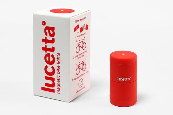 Lucetta 中央有強力磁鐵,左右分開後可看到一紅一白兩個圈圈,分別代表白色 LED 前燈光和紅色 LED 後燈光。