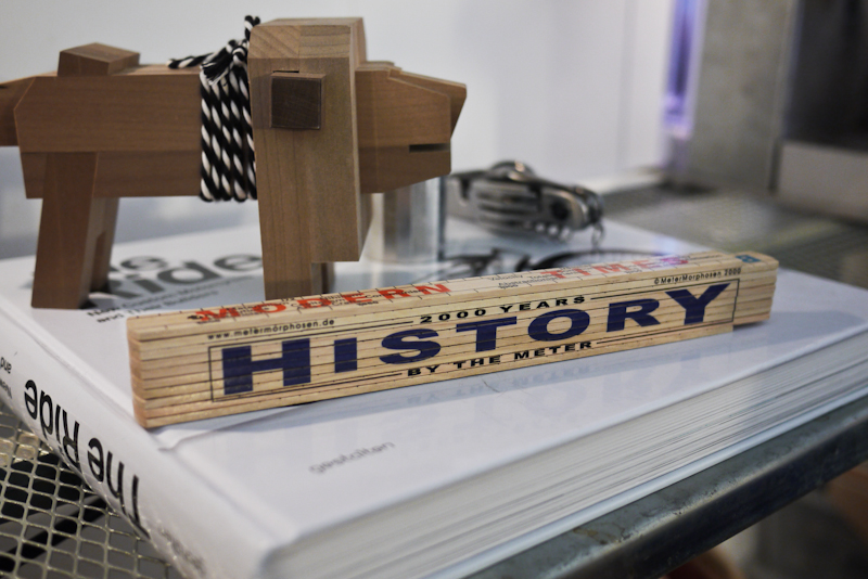 我們最後也請柏志與讀者們分享他個人的特殊收藏,印上人類2000年進化史的「HISTORY」折疊尺、用卡榫組成的木雕獅子、手工機車改造年鑑、多功能瑞士刀—餐具等。從他收藏的設計物來看,都充滿了濃濃的工匠精神,也反映了他實踐在八輪滑板上的設計思維:經常回望過去、挑戰太過合理,不斷嚐試動手實作。