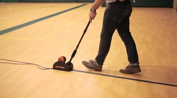 美國公司開發了一款名為 GaffGun 的產品,其實就是個膠台變形體。配上長長的把手直接在地上的電線上滾一圈,就可以把雜亂的走線都蓋上一層膠布,足足比手工作業快上30倍。