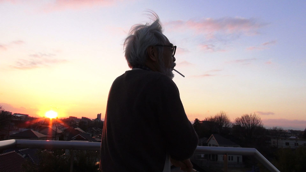自然景色總是最寶貴的資產,在紀錄片中常可看見宮崎駿在工作之餘來到頂樓透透氣。(Photo Crdit:program.hiff.org)