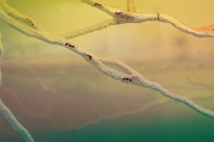 藝術跨界創作的範圍之廣,大概隨隨便便就能超越180度的一字馬或劈腿,跨到令人意想不到的領域。藝術家 Brad Troemel 的裝置作品「Live/Work」中,就以實境秀方式呈現螞蟻的生活與工作,也順便讓人一窺螞蟻世界內部的秘辛。