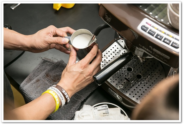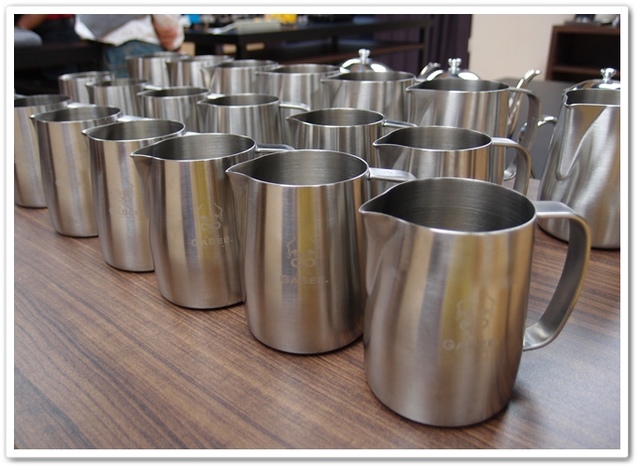 接著就是奶泡的製作,每個人拿自己拉花鋼杯練習