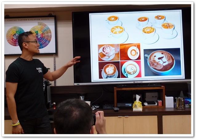 這次的拉花體驗課程前半部是由林東源老師分享咖啡的故事, 以及說明一些拉花的技巧, 下午則是開始實務操作的課程。