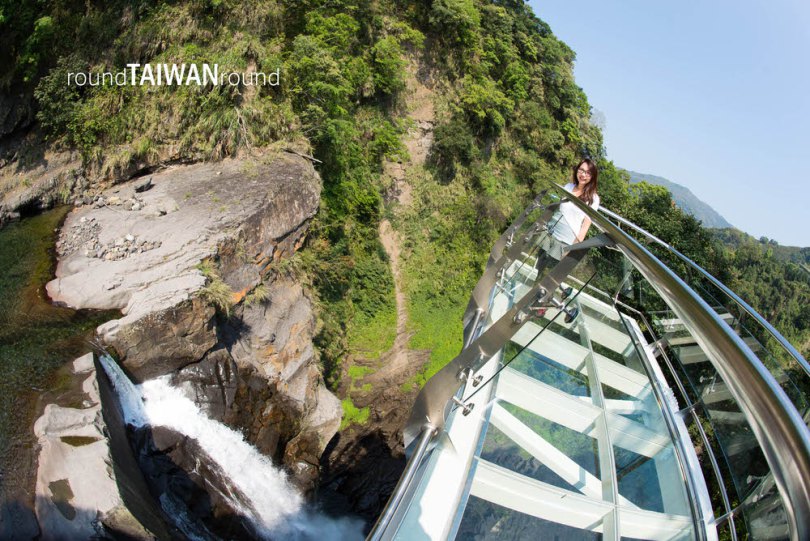 站在玻璃橋上俯瞰鬼斧神工的自然瀑布