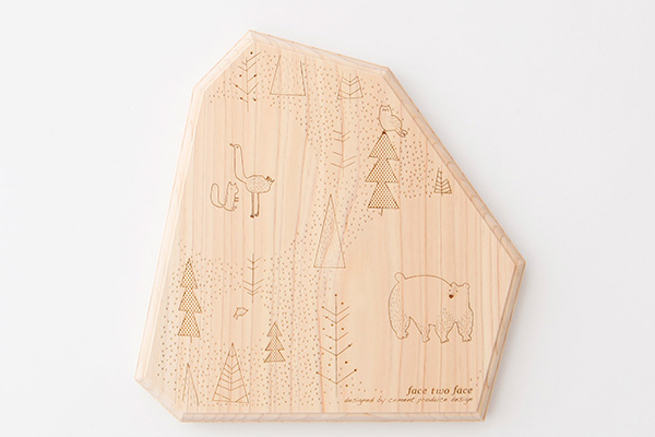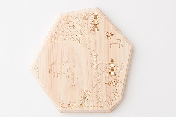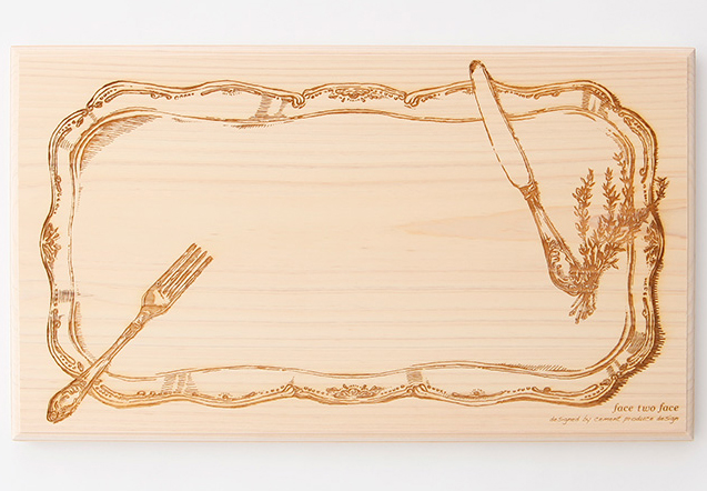 木材使用整塊吉野檜原木製作,散發出的木頭香氣自然不用說了,最有趣的部分當然就在形狀以及雷射雕刻的圖案,主張「飲食的樂趣」,Face Two Face 砧板像是櫥櫃裡最可愛的餐具,用心炮製的料理,在上面直接擺盤整份端出,隨著主人的巧思,變化出不同的視覺驚喜,讓人看在眼裡、吃在嘴裡、樂在心裡,不需要高級料理,也能有超難忘懷的用餐體驗!