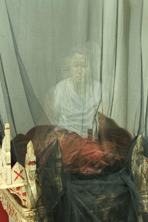 有了別出心裁的特殊畫布,也不能少掉精湛高超的繪畫功力。Nimmalaikaew最擅長人物肖像畫,不只皮膚的紋理與用色精準,眼神所散發出來的靈氣更是讓畫作逼真的關鍵。而畫中的角色多給人陰鬱沉默,甚至帶有點悲傷的感覺,在若隱若現的紗網上多了一分鬼魅的氛圍。