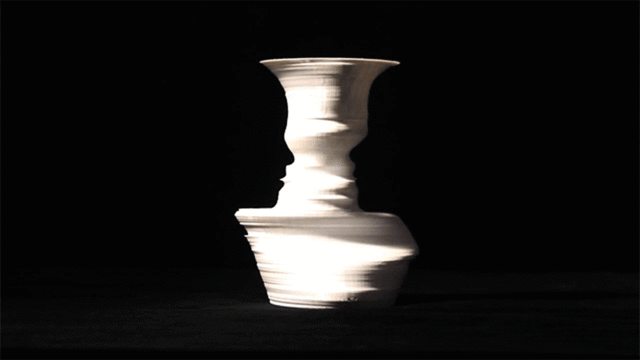 其實花瓶不用旋轉就能看到兩張人臉輪廓,設計師除了要讓大家欣賞花瓶的整體曲線美,或許也想藉此干擾大家的專注力,使大家把焦點放在花瓶本身,而非背後的黑幕上。這支名為「Fahz」的花瓶是由美國設計師 Nicholas Desbiens 和 Martha Desbiens 所共同設計,他們利用3D列印的技術精準特性,把人像輪廓隱藏在花瓶側邊的曲線中,只要將其放在乾淨單純的背景前,便很容易能看出他們充滿玩心的創意之處。