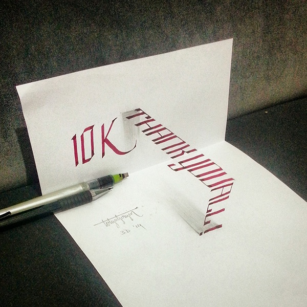 目前他持續在 Instagram 和 Behance 上發佈手稿,其實細看他的作品還是能瞧出一些小破綻,不過相信再過幾個月他就應該能畫出無懈可擊的『真‧偽3D字體』了!