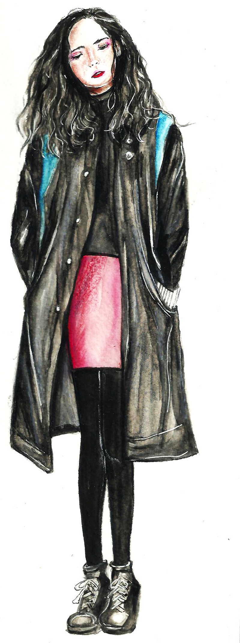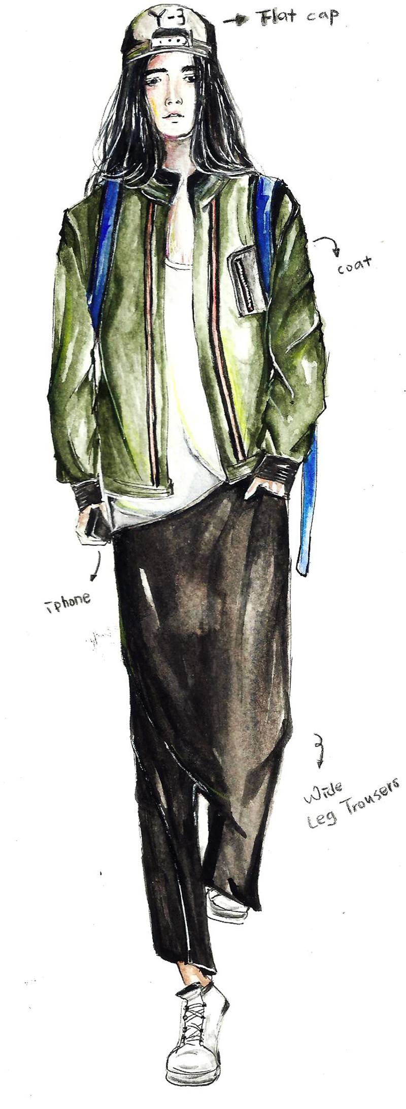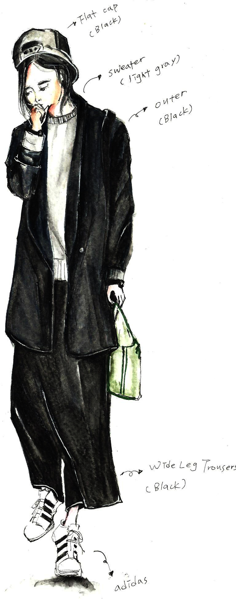我身旁總是有穿著打扮相當具有風格的朋友,也常常被叫來充當拍攝街頭穿搭照的攝影師,某一天,我就突發奇想,想把朋友每天穿的衣服風格畫下來,久而久之,我在這當中找到了樂趣,覺得用畫筆把街頭有型的行人畫下來,就好像在雜誌上看到的模特兒時裝照一樣賞心悅目。
