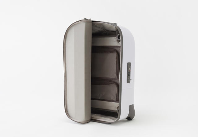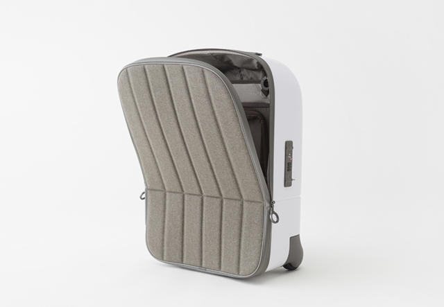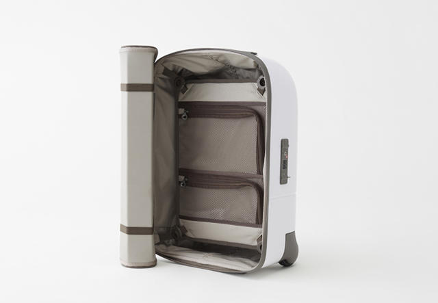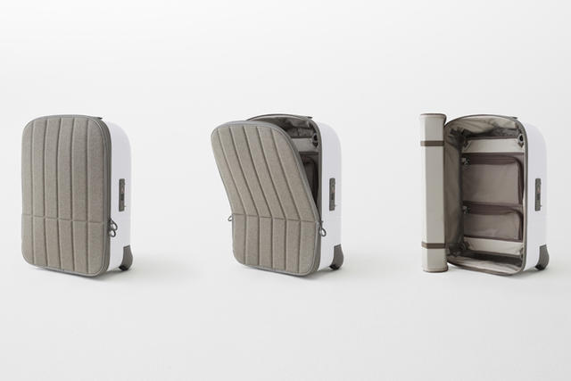 回到功能面來看,nendo 會把登機箱的上蓋做成這樣主要是考量到取物方便性,一般來說,登機箱內放的東西大多是整趟旅程中取用率最高的,這樣的結構可以提供不同開闔程度的選擇,拿東西的時候不用整個大剌剌掀給路人看,可捲式蓋子還能減少空間佔用,在狹小的空間也能方便使用。