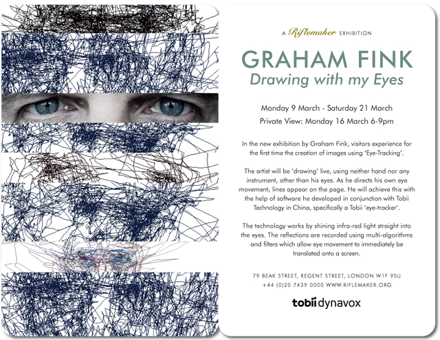 藝術家 Graham Fink 使用拓比眼動儀(Tobii Technology)所提供的眼動追蹤軟體,以紅外線追蹤眼珠的移動,進而在銀幕上轉成一根根線條,在完全不用動手的情況下,完成一幅幅人物畫。