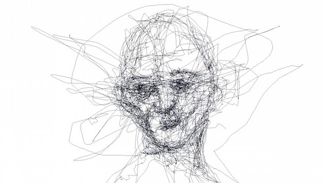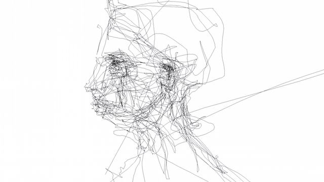 一個人坐在電腦前分文不動,螢幕上卻自動出現雜亂的線條,這樣的場景出現在恐怖電影中八成就是見鬼了,但幸好現在不是在拍電影,不過也足以讓人驚訝的了,也就是用眼球追蹤軟體來作畫!