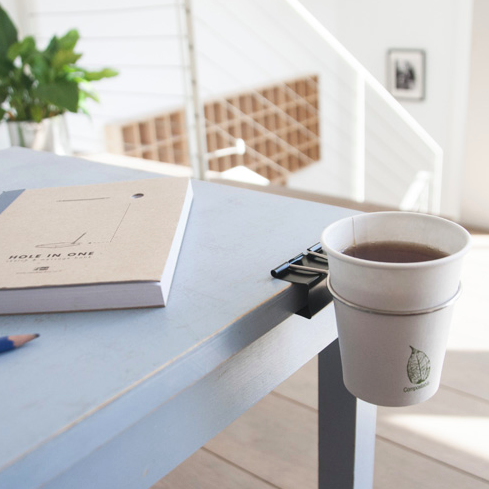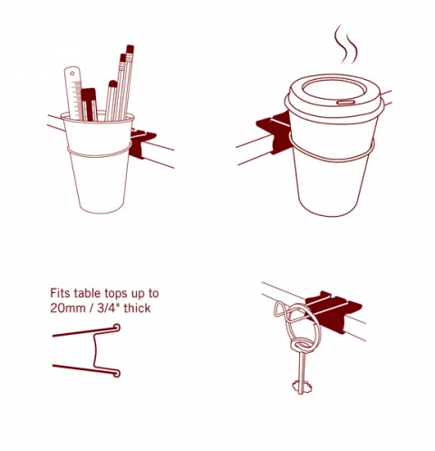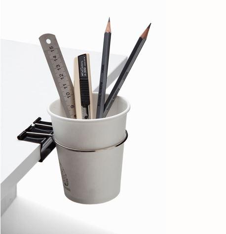 杯架夾的造型就和一般的長尾夾有點像,不同的地方在於,它的「尾巴」胖到足以放個杯子在中間。桌子騰不出地方時,只要將杯架夾夾在桌邊,把咖啡放在上頭,就能邊工作,邊吸收咖啡因提神。當然,能夾的地方也不只是辦公桌啦!舉凡電視架、書櫃、椅子的把手等任何厚度不超過2公分的地方,都能夾得起來。不過如果你的桌子平時就收得整整齊齊、乾乾淨淨,完全沒有錯手打翻咖啡的危機,杯架夾也能搖身一變,成為辦公室中貼心的小秘書,做為文件夾或是筆筒架都十分實用。