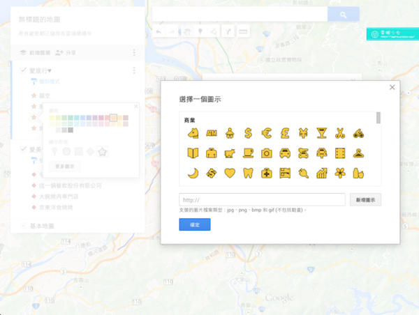 在左邊列表點選油漆桶圖案就可以更改地標的顏色和圖案。