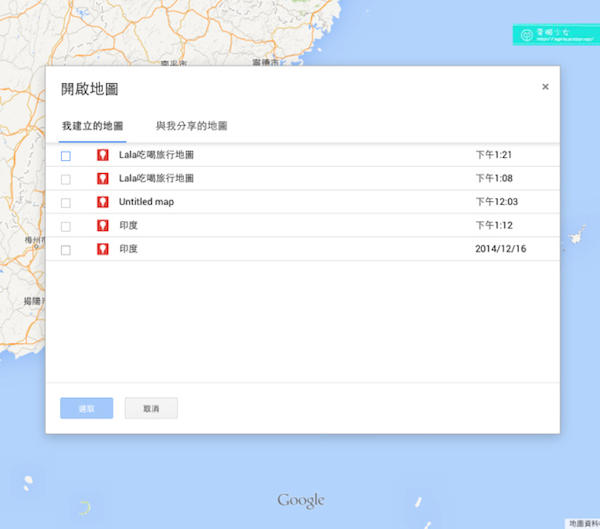 這款「Google Map Engine」不僅有網頁版也有推出App,可以將自己設定好的地圖同步到手機的App。而進到Google Map Engine首頁之後可以選擇「建立新地圖」或是「開啟地圖」,如果想要建立一個新的地圖就點選建立新地圖,準備開始製作個人地圖囉!