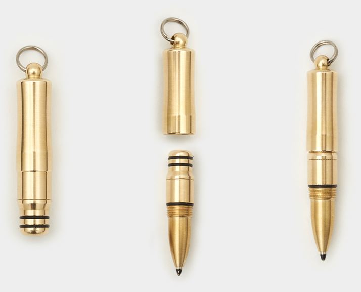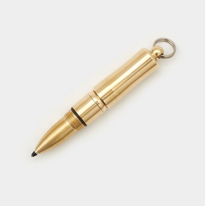 子彈造型的 Mini Brass EDC Pen,只有短短的兩寸,平常串在鑰匙圈上當作吊飾,臨時需要寫字的時候,就可以從容不迫的轉開蓋子拿下來書寫,以一個吊飾來說,Mini Brass EDC Pen 帥度和實用度兼備,靠近看細節的部份,黃銅的質感也無可挑替,可算是表現滿分了!