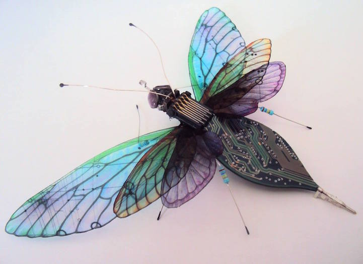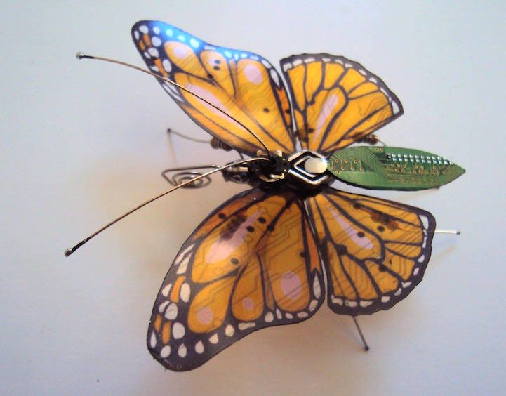 3C 產品日益普遍,各個電子大廠相互爭鳴,競相推出一代又一代的最新產品,隨之而來的現象就是產品週期縮短與快速汰換,而被淘汰下來的電子產品又該何去何從呢?放在抽屜的某個角落直到被人遺忘?跟著垃圾袋一起進入焚化爐?英國藝術家 Julie Alice Chappell 以廢棄電子產品內的電路板創作出一隻隻美麗的蝴蝶與昆蟲,打破電子產品原有的形式,並為他們賦予新生命,就好像破繭而出的蝴蝶,蛻變後更加燦爛耀眼。
