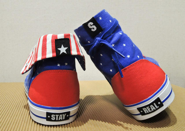 要說到輕便流行感,當然還是帆布鞋最經典阿!STAYREAL 在美國隊長的部份使用高筒帆布鞋,巧妙地把美國國旗元素融入鞋面設計,率性的美式風格本來就和帆布鞋很搭,再加上超級英雄的圖騰加持,完全沒有穿搭限制!