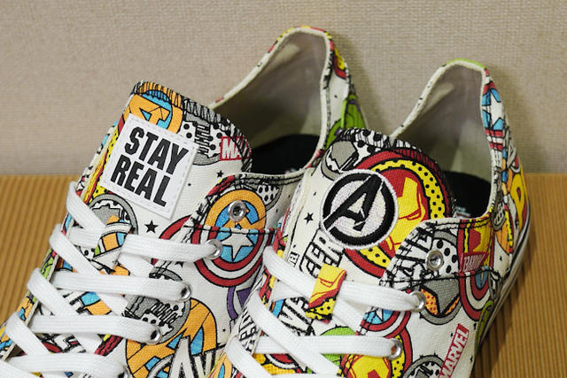 延續整套 STAYREAL│Avengers 的風格,就算是低筒鞋,鞋舌處也有象徵復仇者聯盟的「A」字繡標。